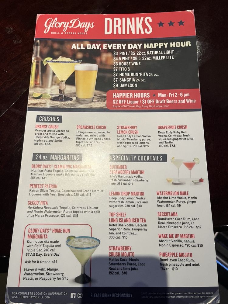 Salads, such as the Antipasto Salad are a fresh addition to an already enticing menu. Plus, the friendly staff ensures a welcoming atmosphere. With its community spirit and consistent kitchens, Glory Days Grill Falls Church is more than just a meal; it's a flavorful adventure.